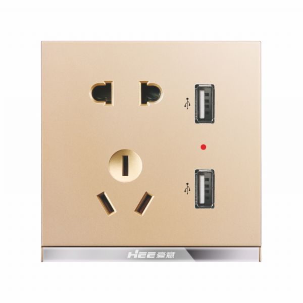 五孔USB插座-金